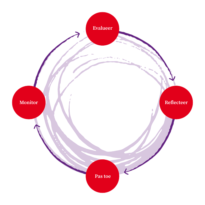 Een continu cyclisch proces verbindt de vier fasen (weten, begrijpen, handelen en veranderen) met elkaar in een krachtige feedbackloop. Elke fase versterkt de volgende.